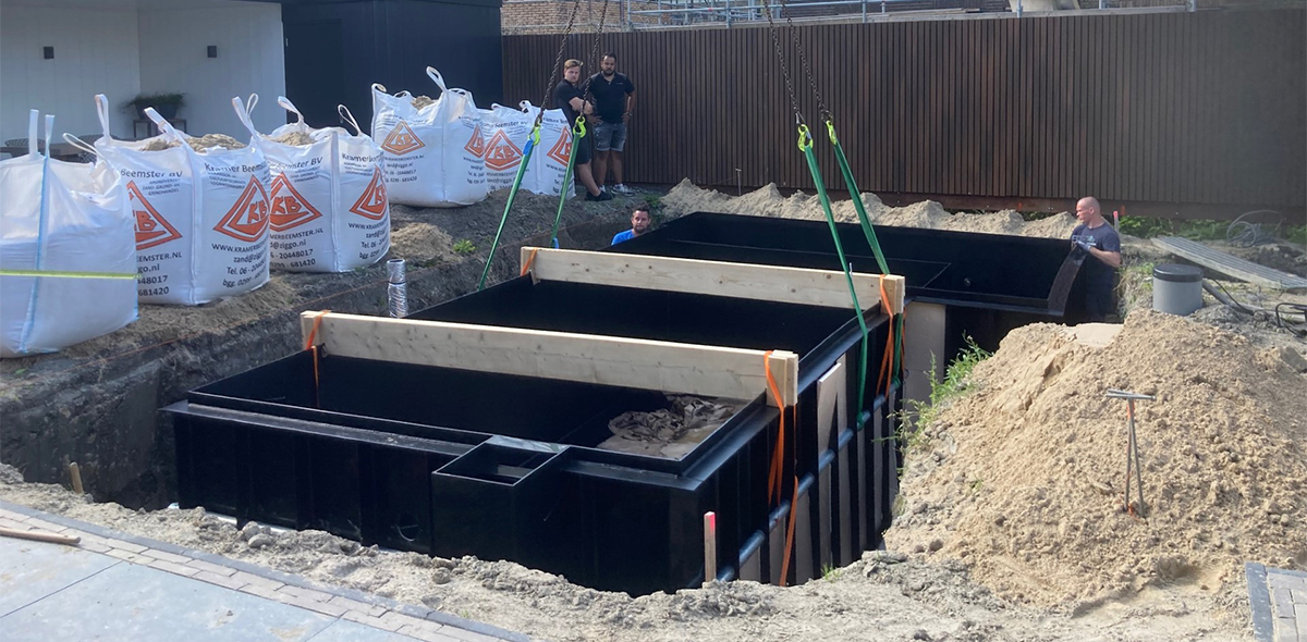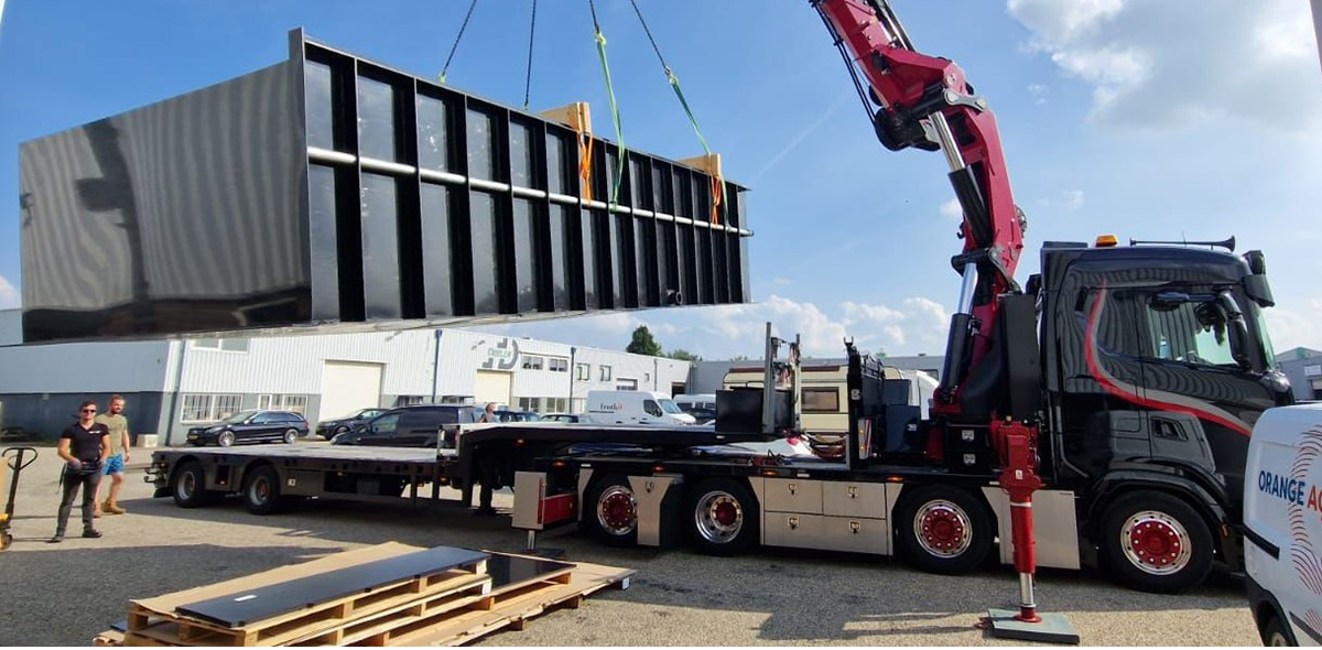 Verzorgen transport en hijskraan. Medewerkers Natural Pools begeleiden de levering.