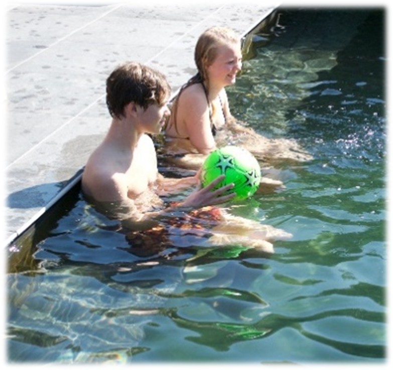 De onderwaterzitbank wordt ca 40cm onder de waterspiegel geplaatst en voorziet in de behoefte om in het water te zitten maar wordt in de praktijk ook gebruikt om op te spelen, staan en lopen of met meer mensen tegelijk in of uit de zwemzone te stappen.